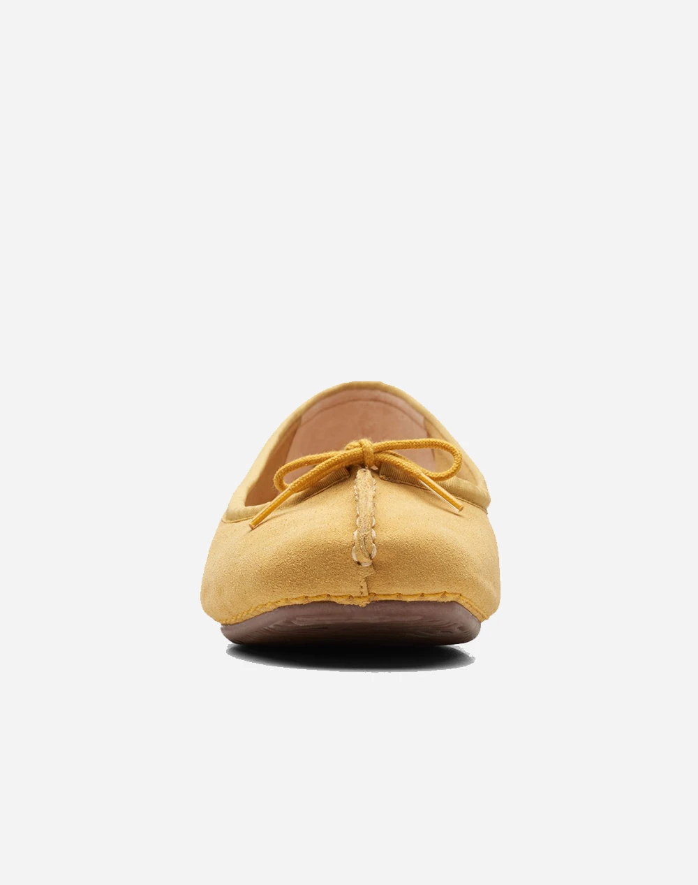 Δερμάτινες ανατομικές μπαλαρίνες, από απαλό και εύκαμπτο δέρμα σουέτ, με διακοσμητική ραφή και φιόγκο στο πάνω μέρος. (Σύνθεση: Δέρμα Σουέτ)