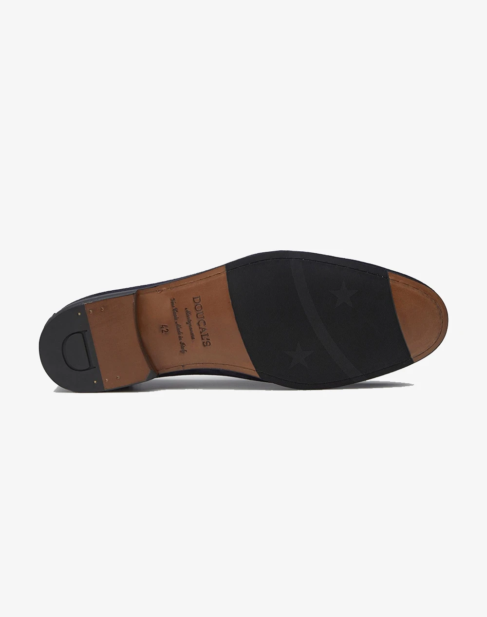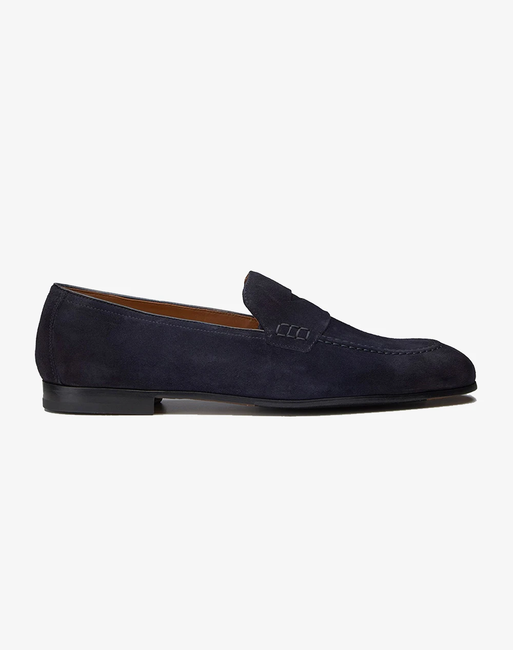 Ανδρικά μοκασίνια μονόχρωμα, σε σουέντ υφή, με vamp ραφές και δερμάτινη σόλα με μισό σπορόφυτο καουτσούκ. ( Σύνθεση: Δέρμα Καστόρι )