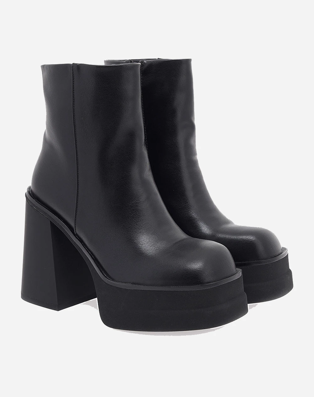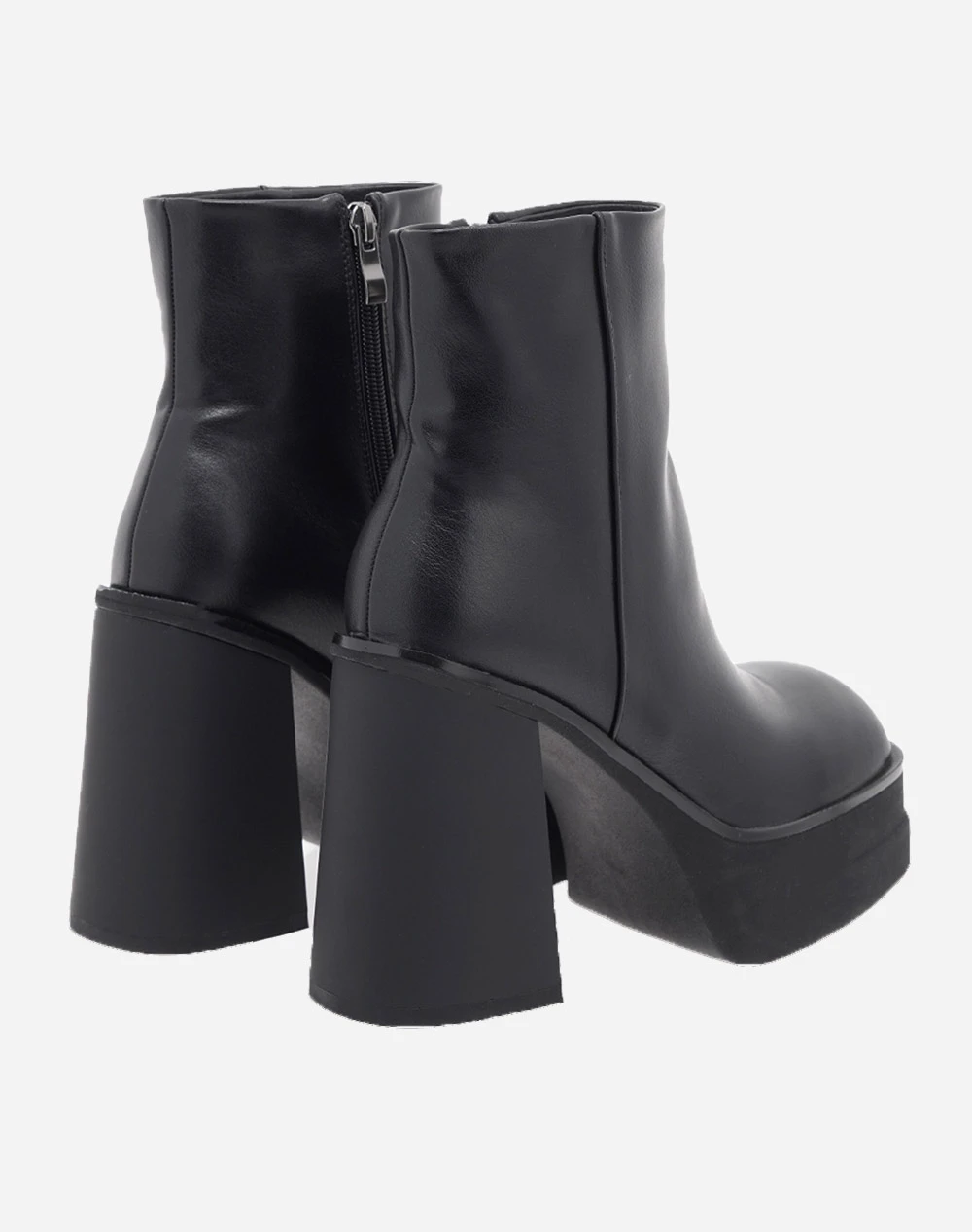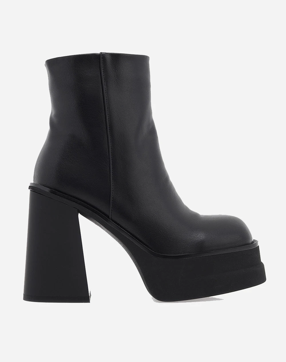 Μποτάκια μονόχρωμα από τη συλλογή της εταιρείας EXE. Με φερμουάρ στο πλάϊ και υπερυψωμένη μπροστινή σόλα. (Σύνθεση: Οικολογικό δέρμα)