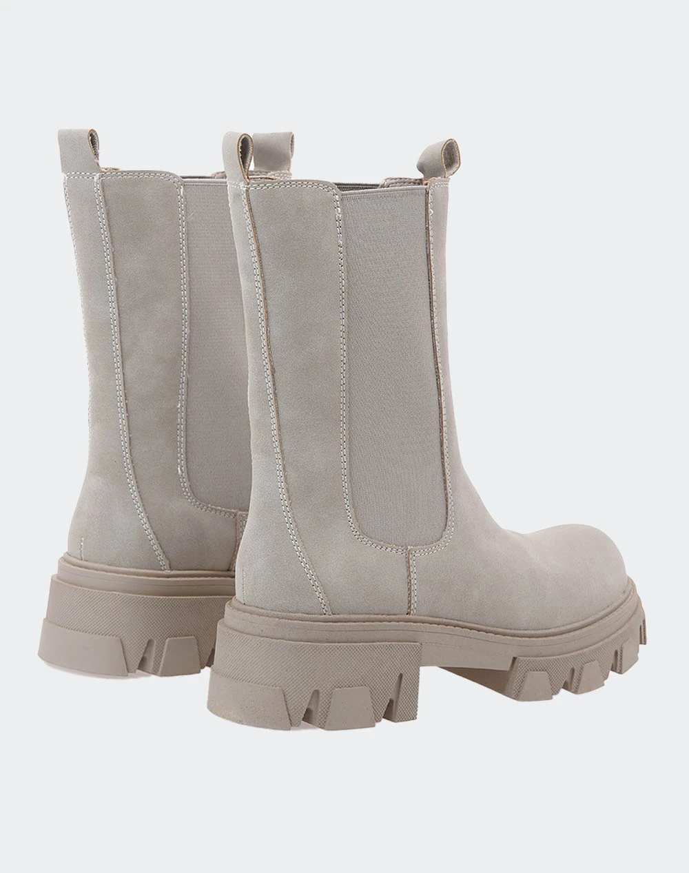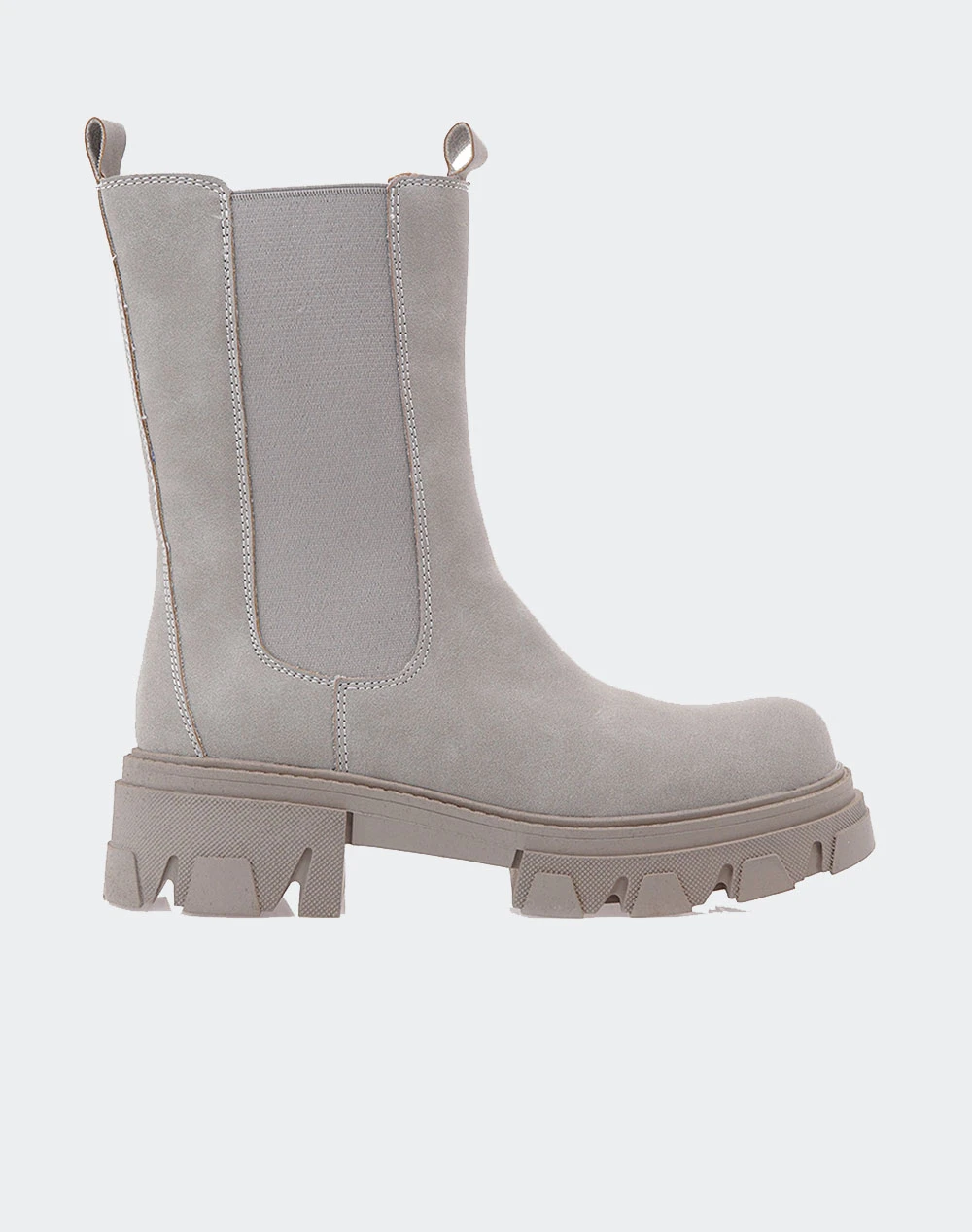 Μποτάκι μονόχρωμο από οικολογικό δέρμα Nubuck, από τη συλλογή της εταιρείας EXE, με λάστιχο στα πλαϊνά για εύκολη εφαρμογή. (Σύνθεση: Οικολογικό δέρμα)