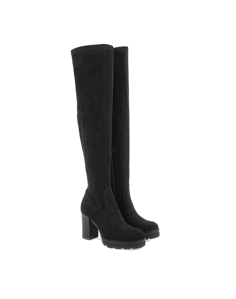 Μπότες μονόχρωμες με μήκος πάνω από το γόνατο, από τη συλλογή της εταιρείας EXE, διαθέτουν φερμουάρ μέχρι τη μέση. (Σύνθεση: Καστόρι)