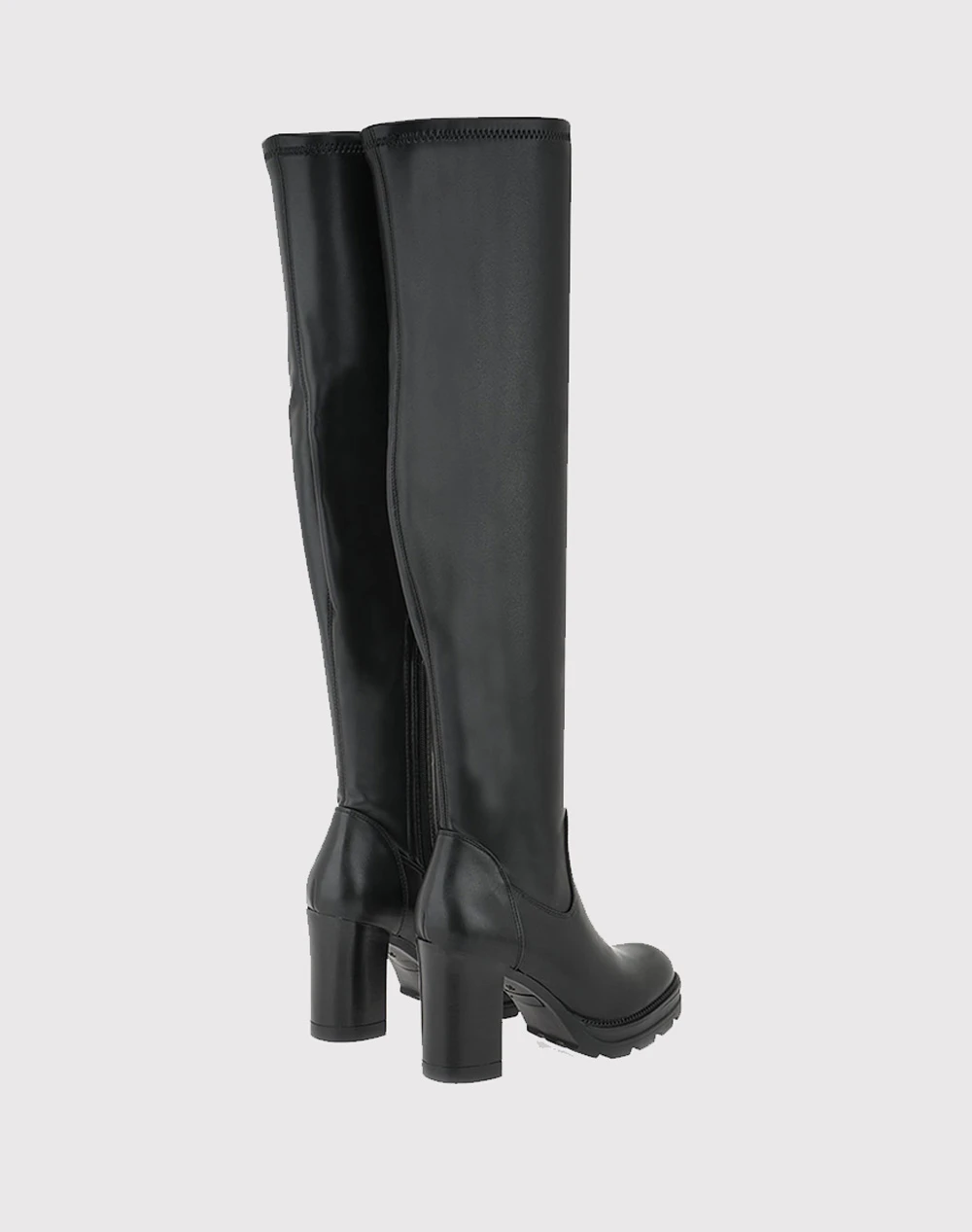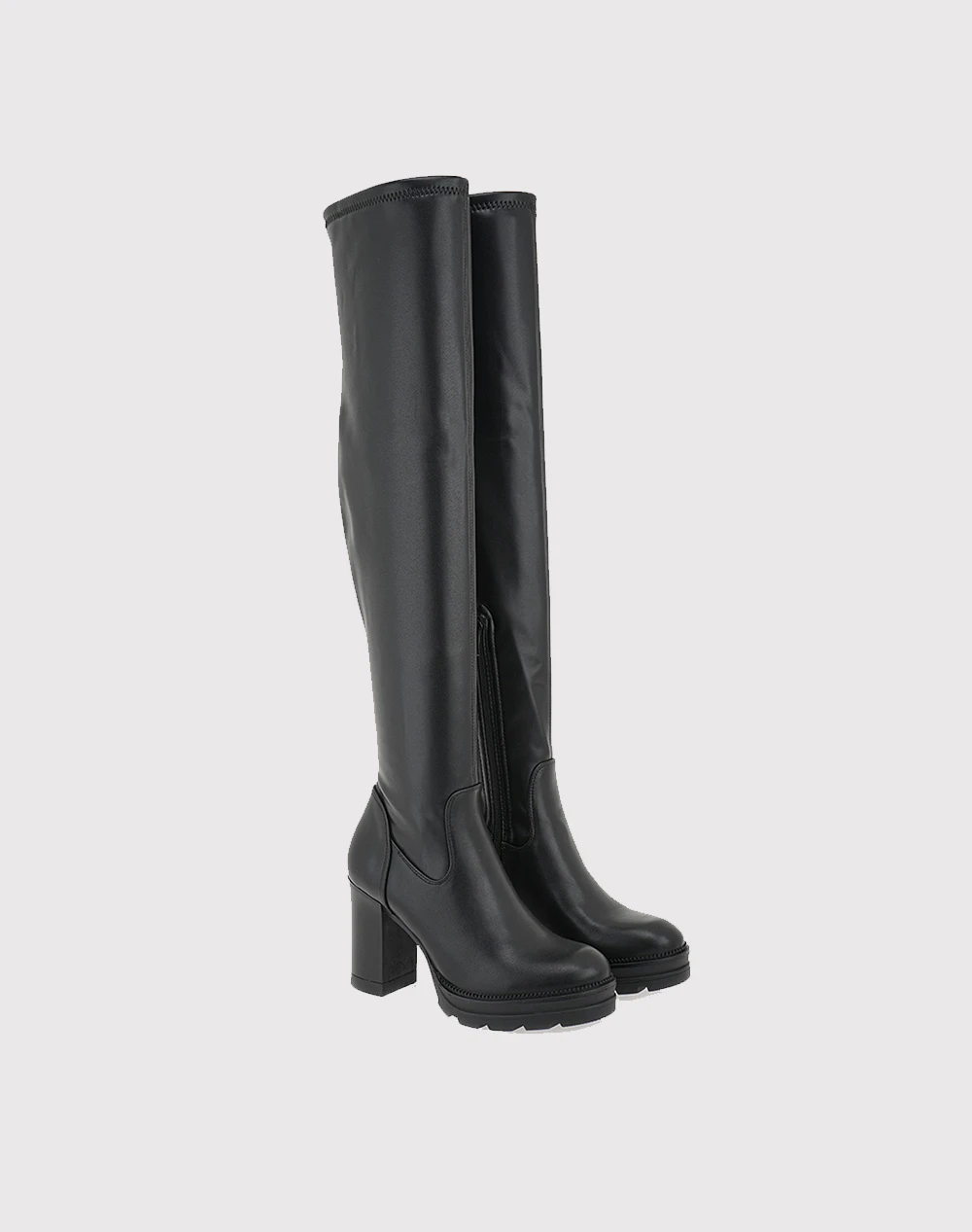 Μπότες με μήκος πάνω από το γόνατο, από τη συλλογή της εταιρείας EXE, με ψηλό και άνετο τακούνι και φερμουάρ στο πλάϊ. (Σύνθεση: Οικολογικό δέρμα)