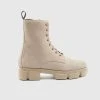 Μποτάκια γυναικεία μονόχρωμα, τα οποάι διαθέτουν επένδυση με σχεδιασμό αλλά και κορδόνια στο μπροστινό μέρος (Σύνθεση: Ύφασμα)