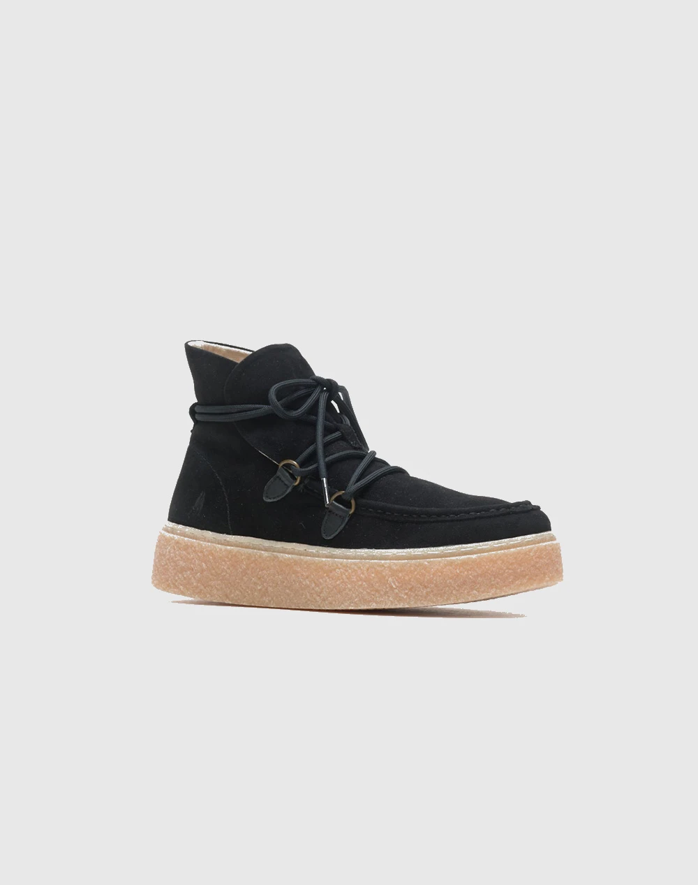 Γυναικεία μποτάκια μονόχρωμα, με κορδόνια, από μαλακό δέρμα καστόρι και σταθερή αντιολισθητική σόλα κρεπ. (Σύνθεση: Δέρμα Καστόρι)
