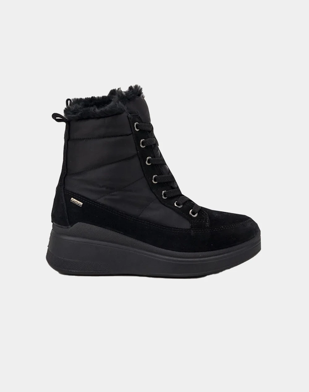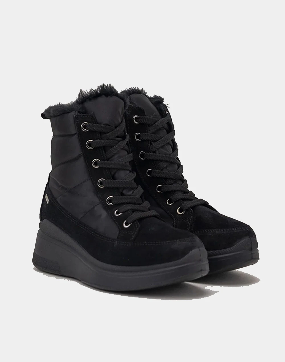 Μποτάκια αδιάβροχα με γούνινη επένδυση και αφαιρούμενο εσωτερικό πάτο. Διαθέτει αντιολισθητική σόλα και δένει με κορδόνια. (Σύνθεση: Σουέτ, Συνθετικό ύφασμα)