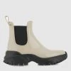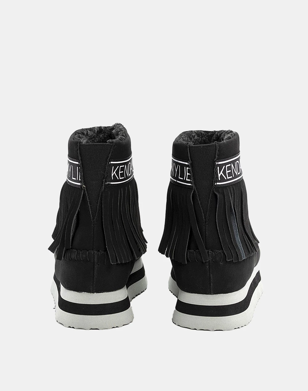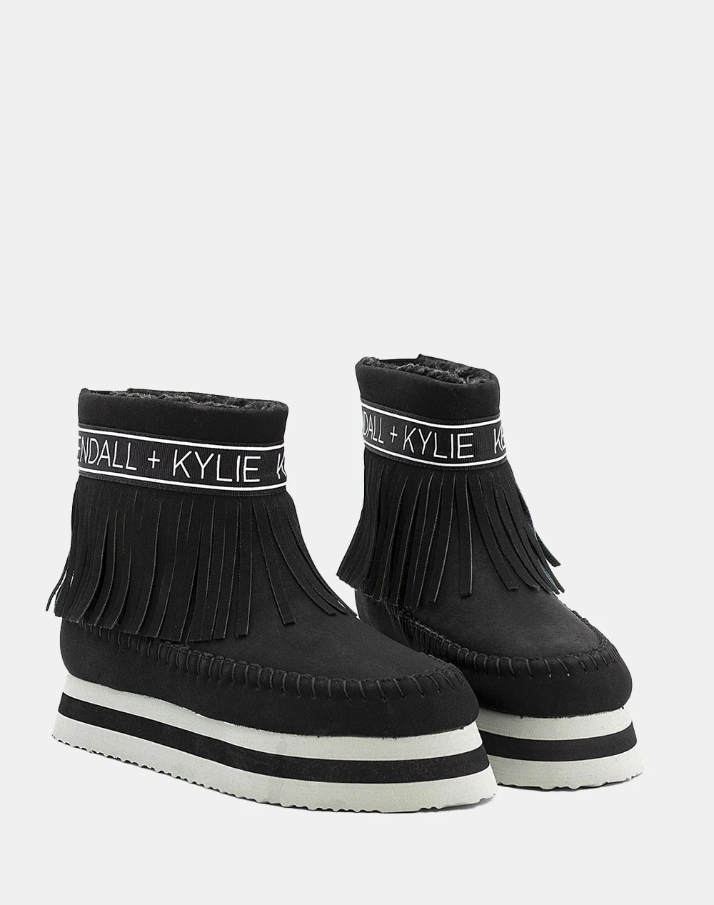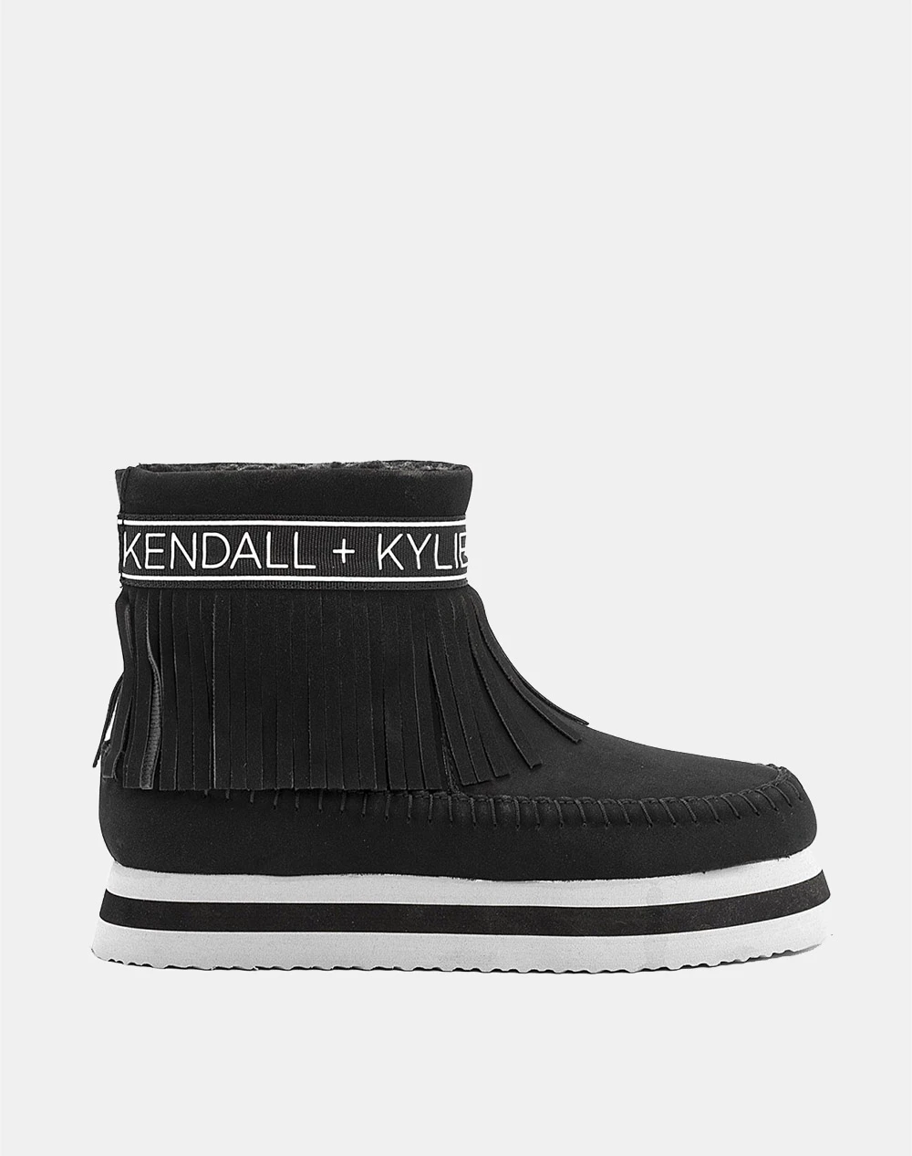 Μποτάκια γυναικεία μονόχρωμα, τα οποία διαθέτουν εμπριμέ λογότυπο στον αστράγαλο, φούντες και εσωτερική φλις επένδυση. (Σύνθεση: Συνθετικό δέρμα)