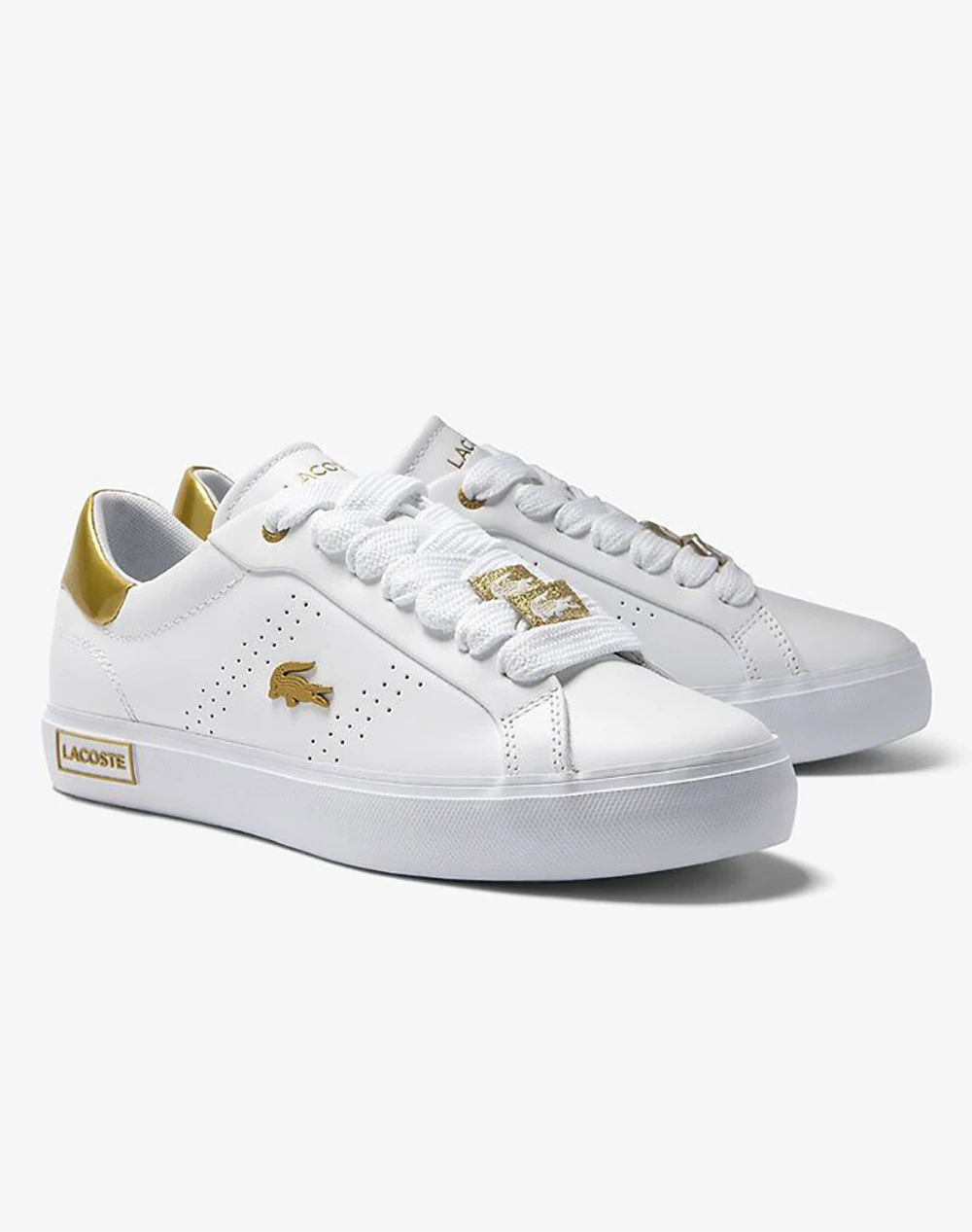 Γυναικεία Sneakers με κανονική εφαρμογή, μονόχρωμα, δέσιμο με κορδόνια, σόλα από καουτσούκ και διακοσμητικές χρυσές λεπτομέρειες λογότυπου. (Σύνθεση: 100% Δέρμα)