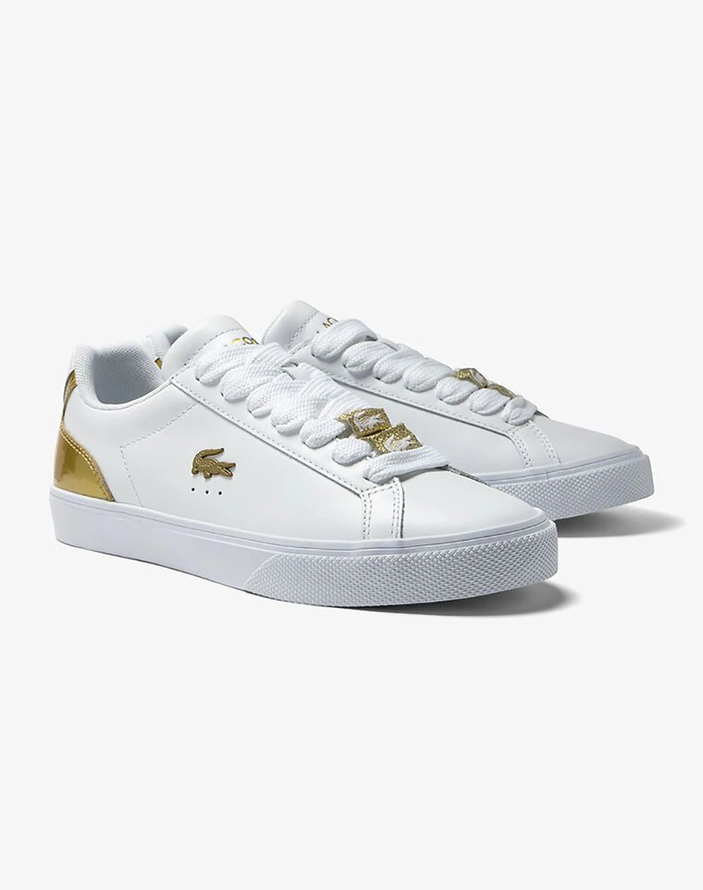 Γυναικεία Sneakers με κανονική εφαρμογή, μονόχρωμα, δέσιμο με κορδόνια, σόλα από καουτσούκ και διακοσμητικές χρυσές λεπτομέρειες λογότυπου. (Σύνθεση: 100% Δέρμα)