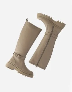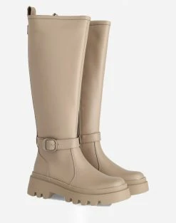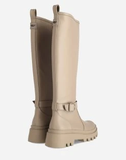 Μπότες μονόχρωμες γυναικείες με διακοσμητικό ρυθμιζόμενο λουράκι, μακλακό εσωτερικό πάτο και αντιολισθητική εξωτερική σόλα. (Σύνθεση: Οικολογικό δέρμα)