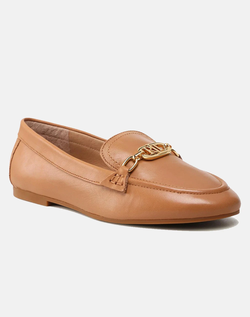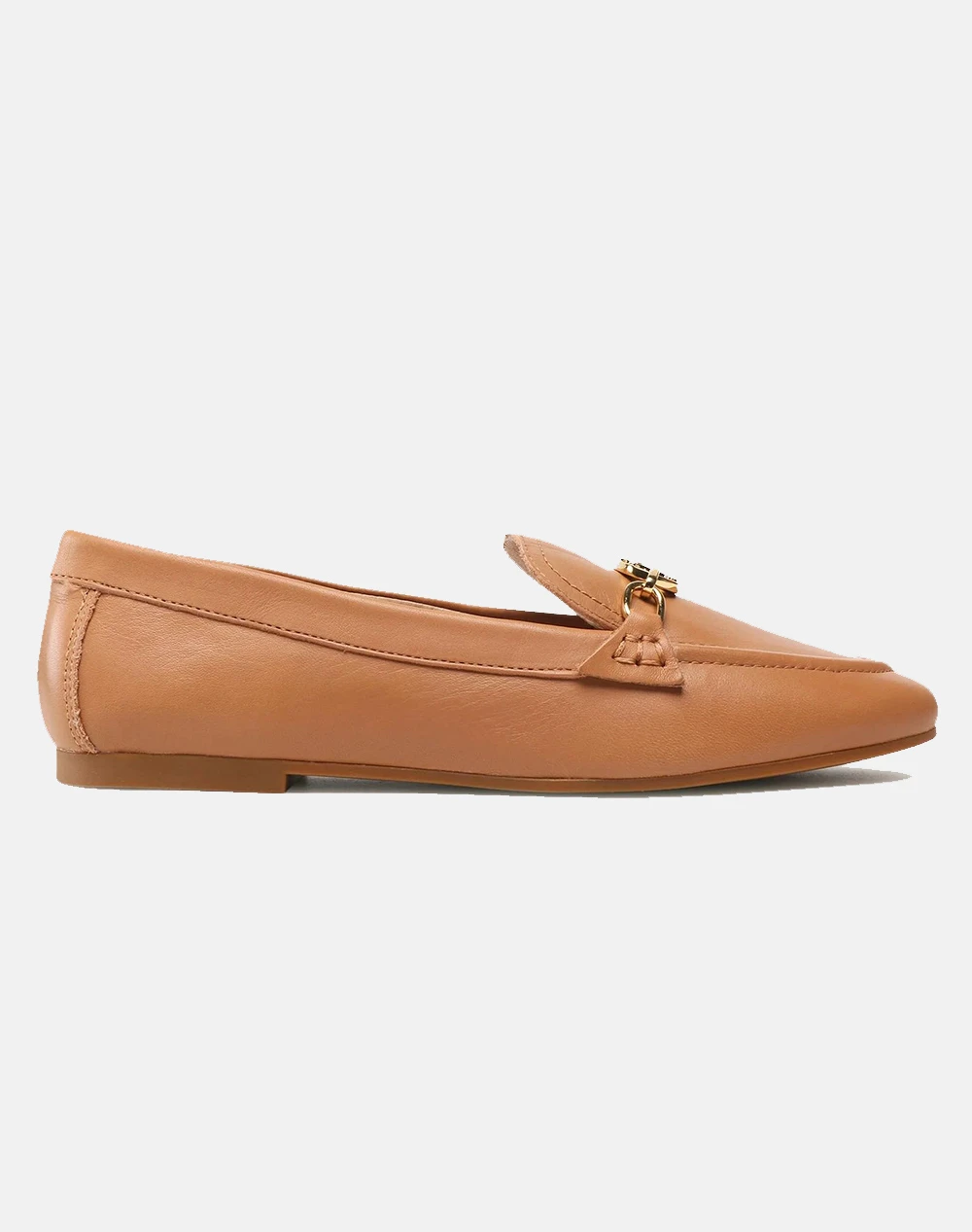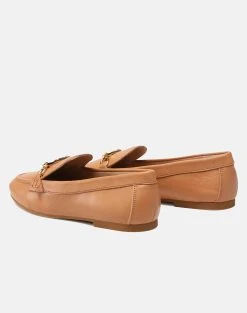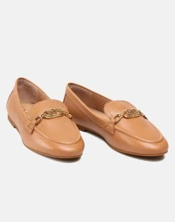 Γυναικεία παπούτσια μοκασίνια μονόχρωμα, φλατ, με διακοσμητικό λογότυπο σε χρυσό χρώμα στο πάνω μέρος. (Σύνθεση: 100% Δέρμα)