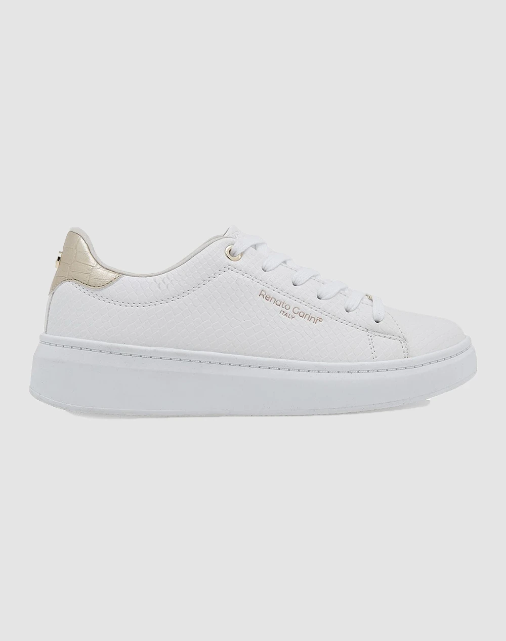 Γυναικεία Sneakers με κανονική εφαρμογή, μονόχρωμα με σχέδιο φίδι και πλατίνα κροκό στο πίσω μέρος. Διαθέτουν μαλακό πέλμα και αντιολισθητική πολύ ελαφριά σόλα. Μαλακό πατάκι memory foam και δέσιμο με κορδόνια. ( Σύνθεση: 100% Ανακυκλωμένο Υλικό )