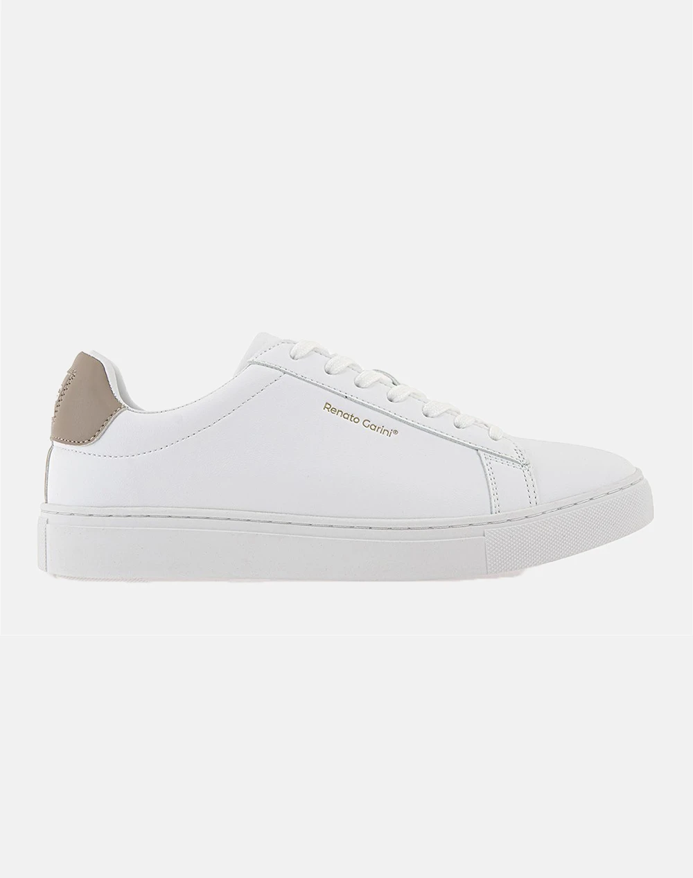 Sneakers από τη συλλογή της εταιρείας RENATO GARINI, σε στυλ Low Cut και με λεπτομπέρεια σε αντιθέση στη φτέρνα. (Σύνθεση: Οικολογικό δέρμα)