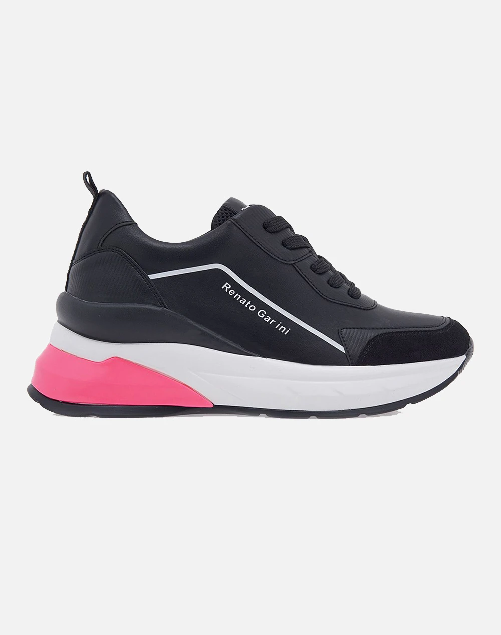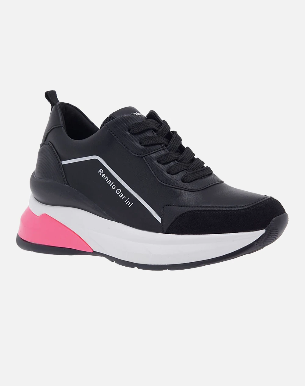 Sneakers γυναικείο από τη συλλογή της εταιρείας RENATO GARINI. Με φούξια λεπτομέρεια στη φτέρνα και το λογότυπο της εταιρείας στο πλάϊ. (Σύνθεση: Ύφασμα. Συνθετικό υλικό)