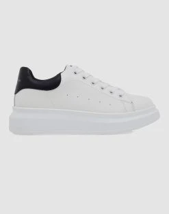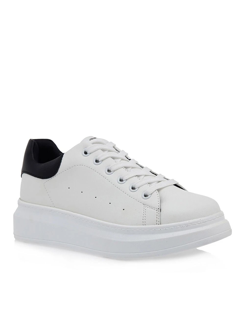 Γυναικεία Sneakers με κανονική εφαρμογή, μονόχρωμα με σχέδιο στο πίσω μέρος που δημιουργεί διχρωμία και δέσιμο με κορδόνια. ( Σύνθεση: 100% Συνθετικό )