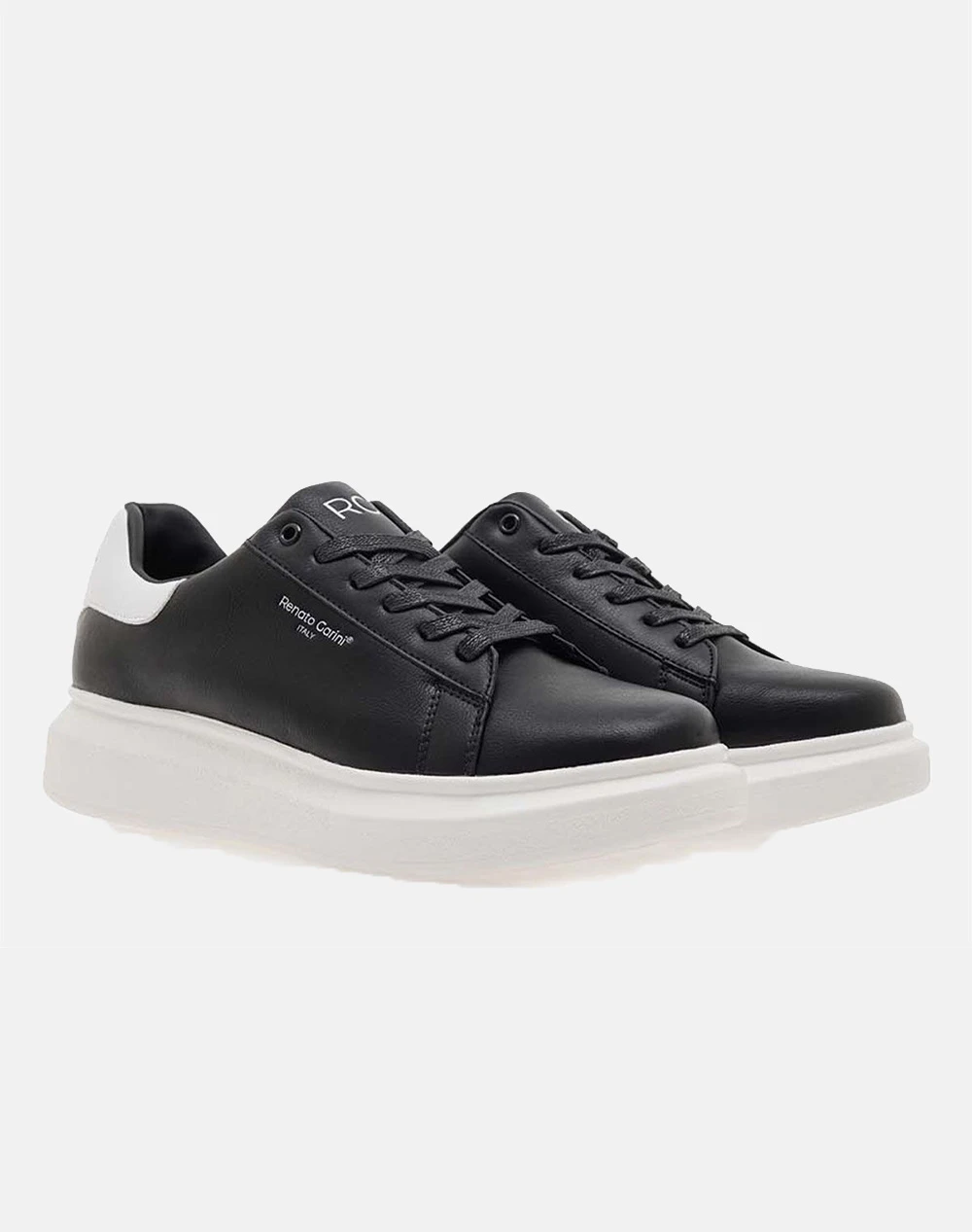 Sneakers με υπερυψωμένη σόλα, από τη συλλογή της εταιρείας RENATO GARINI, με δίχρωμια και υφασμάτινα κορδόνια. (Σύνθεση: Οικολογικό δέρμα)