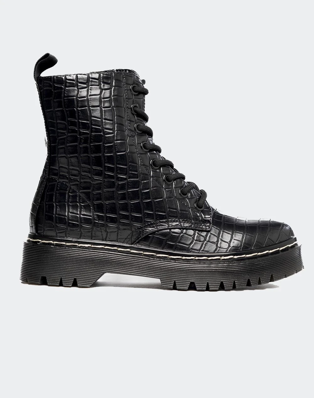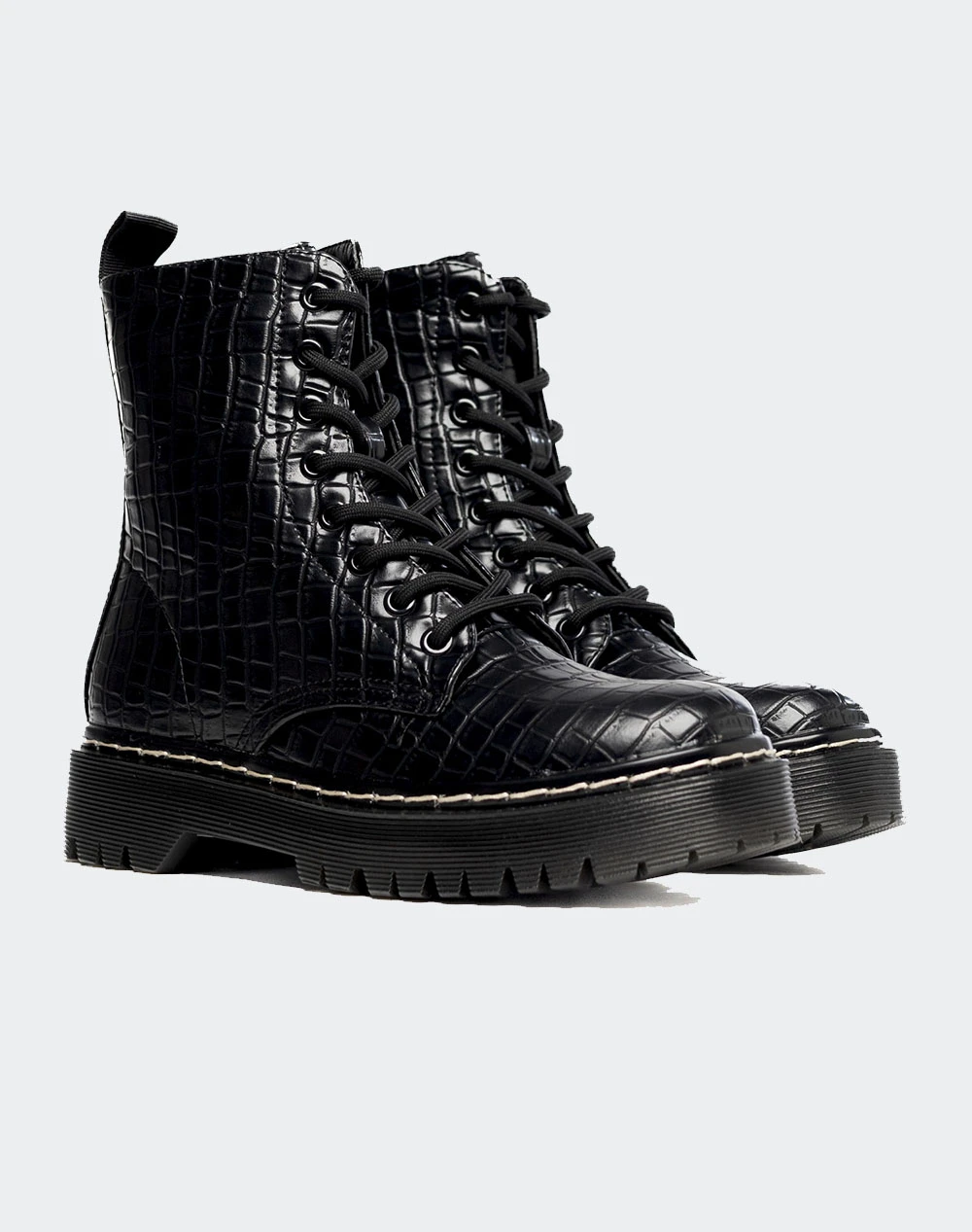 Αρβυλάκια μονόχρωμα με υφή κροκό, λουστρίνι γυναικεία με κορδονιά αλλά και φερμουάρ για εύκολη εφαρμογή. (Σύνθεση: Συνθετικό δέρμα)