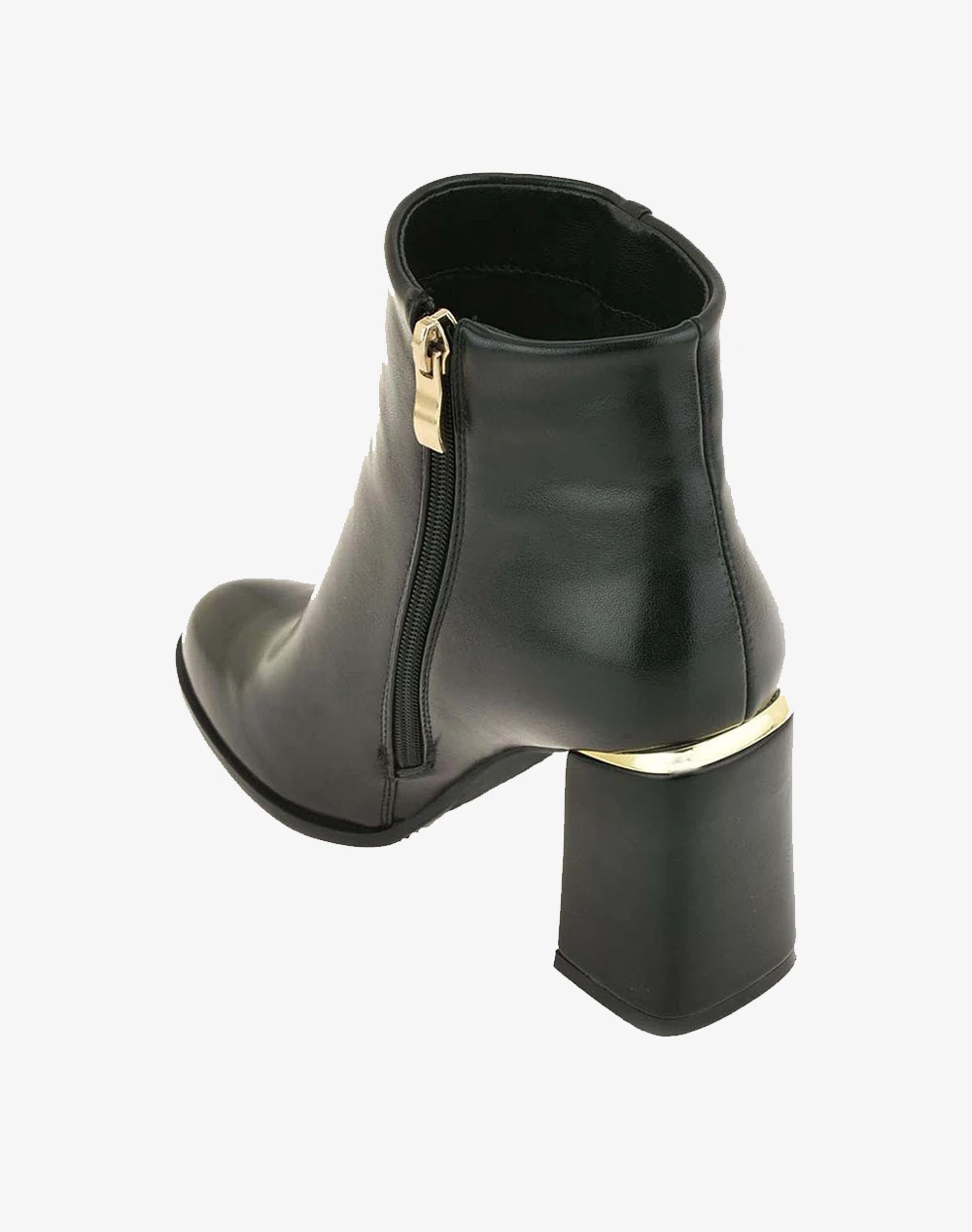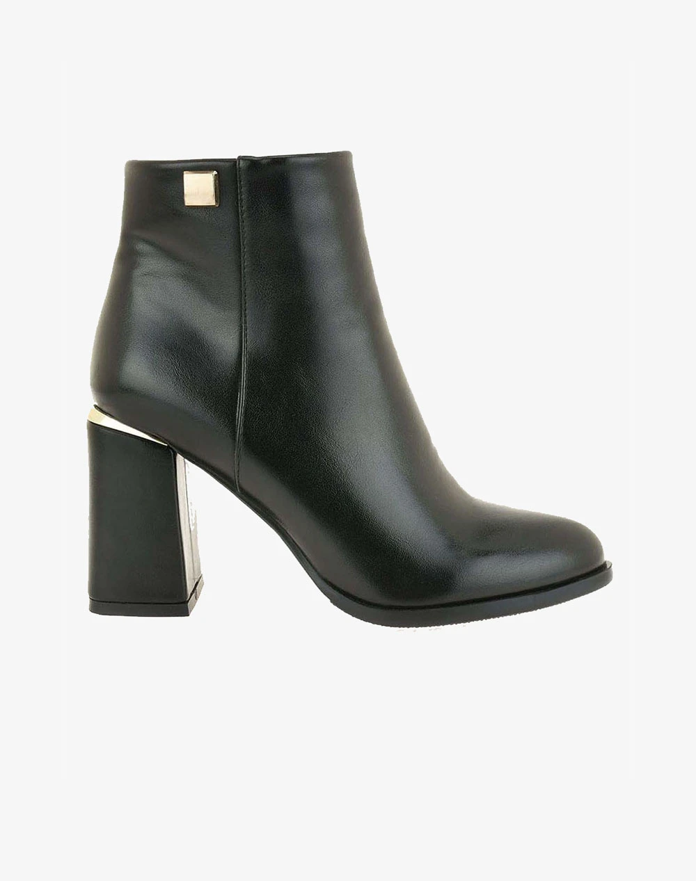 Μπότακια μονόχρωμα, από τη συλλογή της εταιρείας SEVEN, με φερμουάρ στο πλάϊ και διακοσμητική λεπτομέρεια στο τακούνι. (Σύνθεση: Οικολογικό δέρμα)