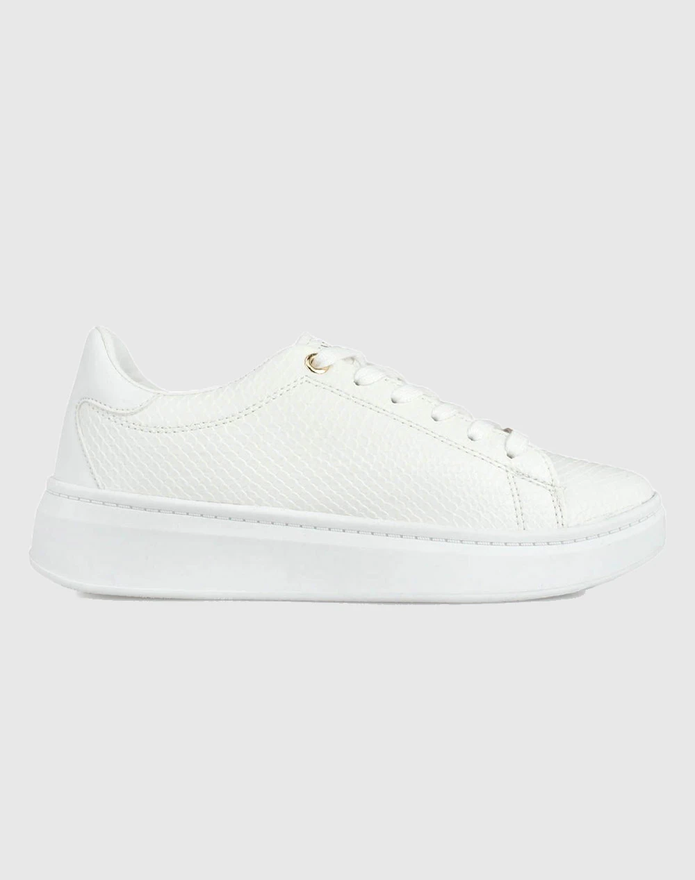 Γυναικεία Sneakers με κανονική εφαρμογή, διακοσμητικές λεπτομέρειες μπροστά, μονόχρωμα με σχέδιο φίδι και δέσιμο με κορδόνια. ( Σύνθεση: 100% Συνθετικό )