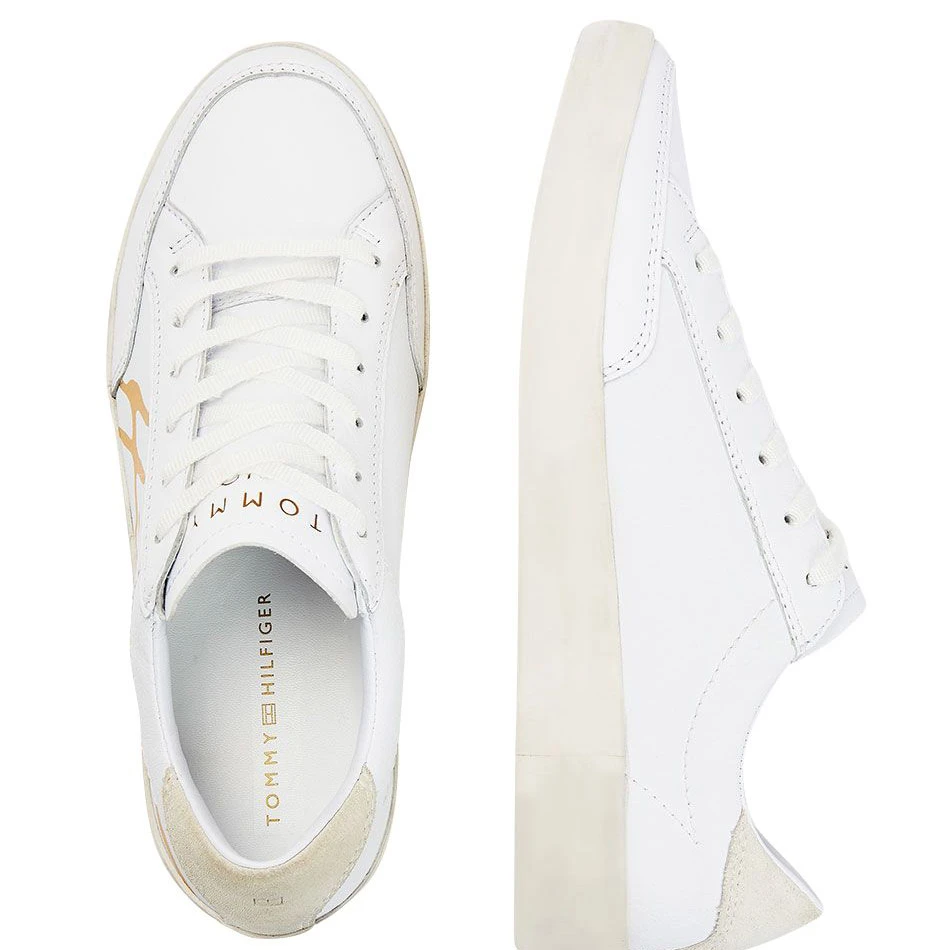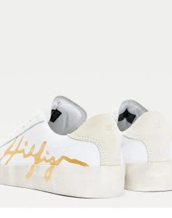Sneakers παπούτσια γυναικεία, τα οποία διαθέτουν μπροστινό δέσιμο με υφασμάτινα κορδόνια και Lettering στο πλαΐνό μέρος (Σύνθεση: Δέρμα)
